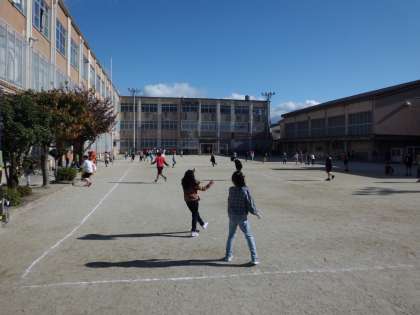 青空のもと,気持ちよく体を動かして遊んでいます。