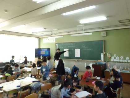 1年生と一緒に活動するために,それぞれの遊びの紹介を画用紙に書いています。