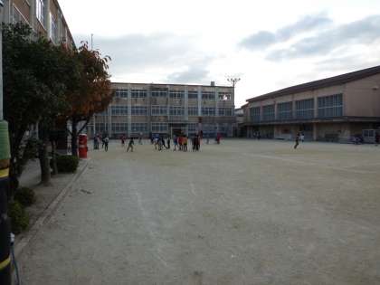 グラウンドでは,子どもたちが楽しく遊んでいます。