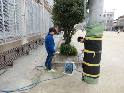 環境委員会の子どもたちが当番活動をしています。