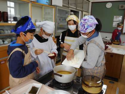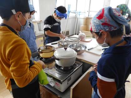 「食べて元気!ごはんとみそ汁」の学習で,ごはんとみそ汁を作りました。
