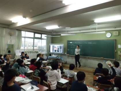 デジタル教科書のコンテンツを大型テレビに映しながら学習をしています。