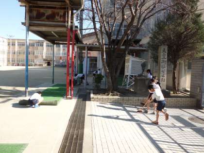 正門付近担当の子どもたちも,隅々まできれいにしようと取り組んでいます。