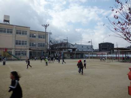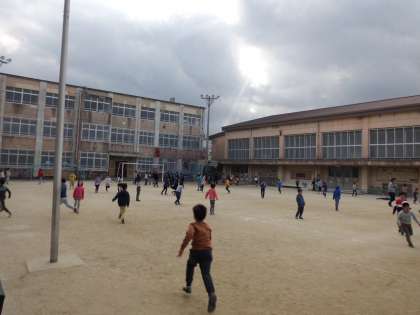 グラウンドでは,たくさんの子どもたちが遊んでいます。