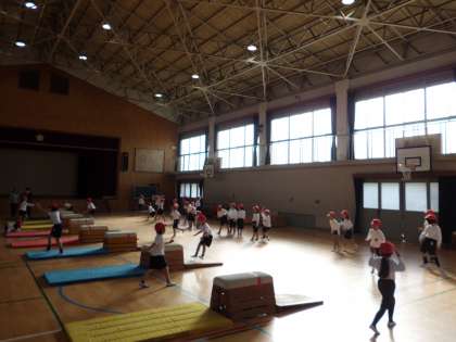体育館で,とび箱あそびの学習をしています。