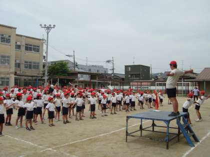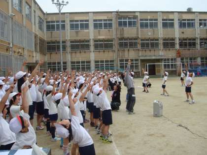 今日の全体練習では、入場と退場、ラジオ体操の練習をしました。
