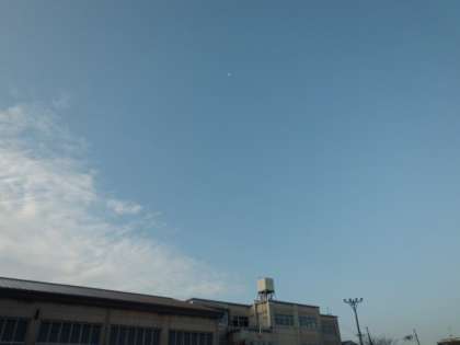 校舎の上空には,きれいな半月がありました。
