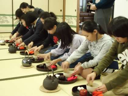 袱紗さばきなど作法を学びながら,お茶をいれています。