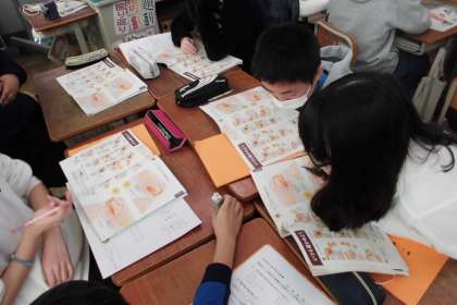 6年生では,調理実習にむけて,調理の役割分担や,調理の手順,野菜の切り方など,具体的な内容を話合い決めていきました。実習当日は,班のみんなで協力して,5・6年の家庭科で学んだ包丁の持ち方や,茹でる・炒める知識を活用して調理してほしいです。