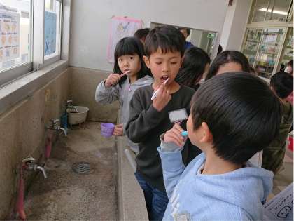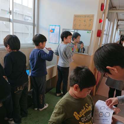 今週は給食後の歯みがき週間です。給食後に歯みがきをした人は保健委員会の人たちにシールをもらいます。