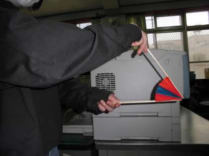 色紙3まいとわりばしを使ってまるく開くおうぎをつくってみましょう。