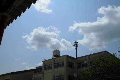 給食室前の渡り廊下を歩いていると,あまりにもいい天気だったので,南側の空を写真に撮ってみました。