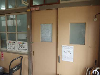 こうしゃの いりぐちを はいり,すぐ みぎがわ にあるへやです。