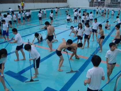 6月13日(月)の6校時に,6年生の子どもたちがプール掃除をしてくれました。今週末17日(金)のプール開きを控えて,プールの中やプールサイドをきれいにしたり,用具類を運んだりしてくれました。