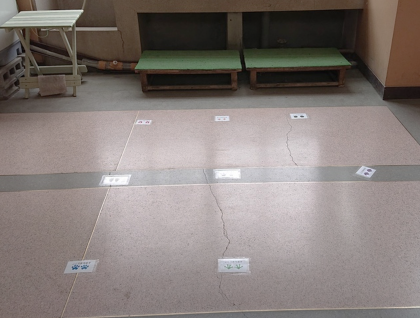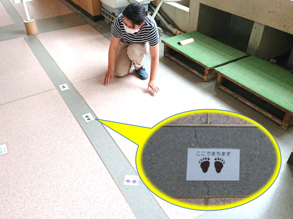 床にラベルをはってくださっているのです。