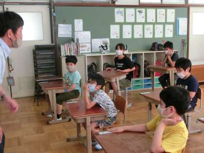 「ようやくこうして学校に集まることができました。今日から少しずつですが,学校は元通りになっていきます。勉強や遊びに一生懸命取り組んでください。今までとは違うルールやきまりを守って,一人一人が感染予防をし,元気に過ごしてください。」というお話を聞きました。みんなしっかり聞いていました。
