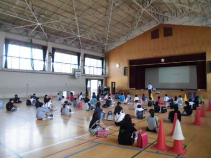 体育館で校長先生や担任の先生の話を聞いて,これからの生活をイメージしました。