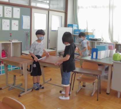 子どもたちが協力して机を運んだり,自分で気づき進んで行動したりする姿に,感心させられます。