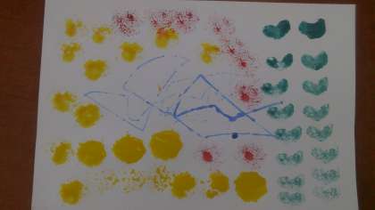 身の回りにあるいろいろな道具を使って,もようを作りました。