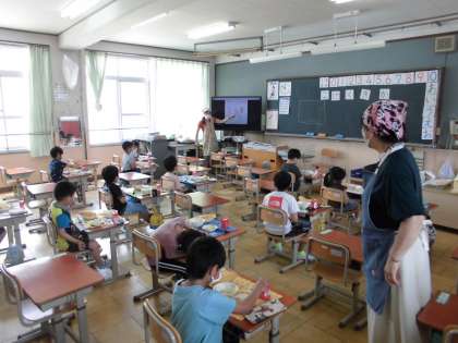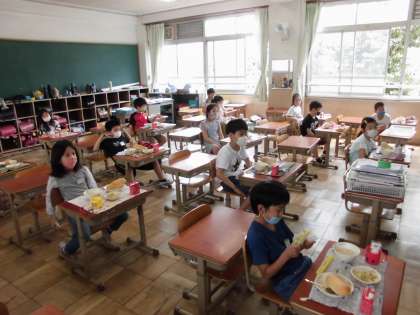 6月9日(火)の給食は,コッペパン・牛乳・ツナサンド(具)・チャウダーでした。コロナウイルス感染拡大防止のため「かからない・うつさないために」どんなことに気を付けて給食時間を過ごしたらよいのかを考えながら,給食当番をしてくれていました。また,教室で静かに待つ人は,パワーポイントを静かに聞いて手洗いの仕方や配膳中に気を付けること・食器の場所を確認していました。