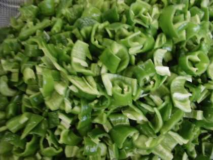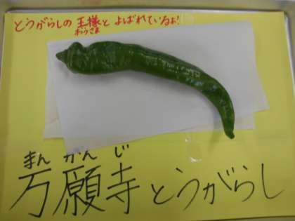 今日は,夏野菜のあんかけごはん(具)の中に京都産の立派な万願寺とうがらしが使われています。調理員さんは縦半分に切り種子を丁寧に取り除いてくださっていました。