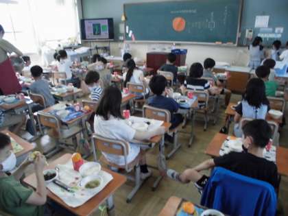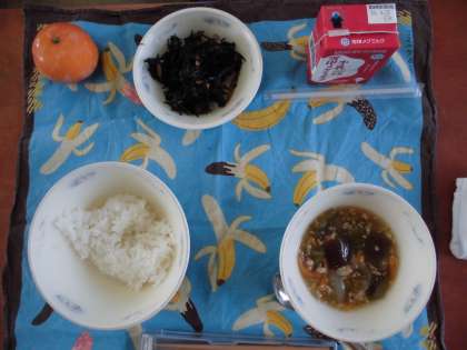 6月17日(水)の献立は,ごはん・牛乳・夏野菜のあんかけごはん(具)・ひじきの煮つけ・みかんでした。今日は,「万願寺とうがらし」と「なす」と使ったあんかけごはんが登場しました。大人にとっては美味しい夏野菜ですが,子どもたちの中には苦手な子もいるかな…と食べやすい大きさに切りました。また,素材の色や形を活かすために約180度の油で揚げるひと手間を加えました。しょうがの味が効いており,暑い日に食べやすい献立でした。子どもたちにも大変好評でした。