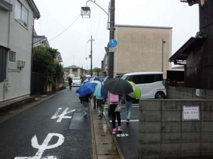 今日は,雨天のため傘をさしての登校です。