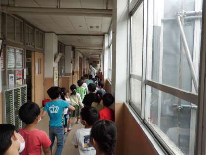今日は,学校探検を半分に分けて実施しました。