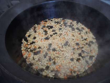 6月24日(水)の献立は,ごはん・牛乳・豚肉とキャベツのみそいため・五目煮豆・桜もちです。今日の給食の五目煮豆はちくわ・大豆・にんじん・こんにゃく・昆布の5つが入っています。朝からじっくりコトコト三温糖と醤油で調理員さんがおいしくなあれという思いを込めて,煮てくださっています。みんなに届け!おいしいお豆!