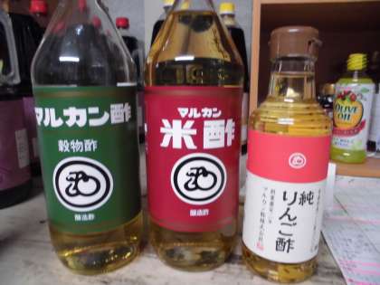今日の副菜「切干大根の三杯酢」は米酢を使った,蒸し暑い日に食べやすい献立の一つです。給食では献立によって,米酢・りんご酢・穀物酢を使い分けています。今日はその中でも「米酢」を使っています。
