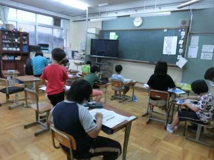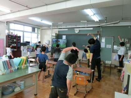 朝の会では,今日の予定を確認したり,体操をしたりします。
