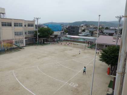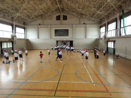 新体力テストを実施しています。 ソフトボール投げ・立ち幅跳び・長座体前屈・反復横跳びを実施しました。