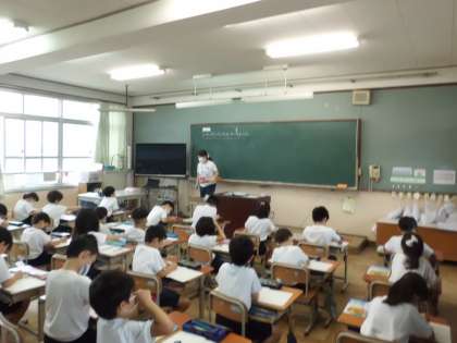 算数の学習の様子です。 たし算の筆算の学習をしています。 めあてを丁寧にノートに書いています。