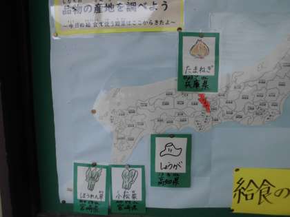 また,社会科で都道府県を学習している4年生が,産地調べの掲示板を「今日の野菜はどこからきたかな?」と意識して見てくれていました。
