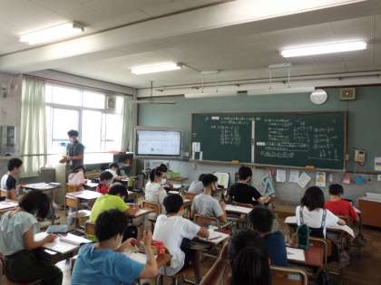 算数の学習の様子です。 今日は,かける数が分数の時の,かける数と積の 大きさの関係を調べました。
