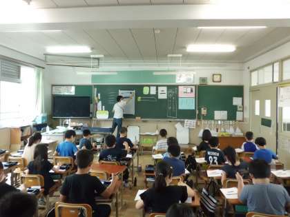 書写の学習の様子です。 3年生から,習字の学習が始まっています。 今日は,「二」を書きました。