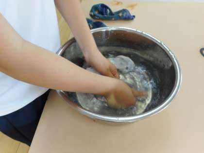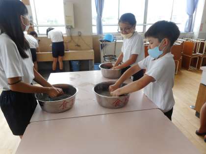 家庭科の学習で手洗いで洗濯する学習をしました。