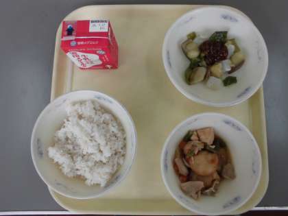 給食でのソース・たれは色々な調味料を組み合わせて手作りしています。今日はほんのり甘いみそだれが登場しました。残ったみそだれはごはんにもよく合います。美味しくいただきました!!!