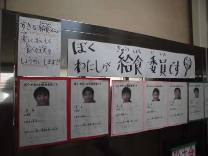 給食委員会の活動の一つに給食時間の放送があります。新型コロナウイルス感染拡大防止のため,事前に,給食時間に各クラスで見てもらうビデオ作りを給食委員が行っています。職員室での放送とはまた違った緊張感があるようです。また,給食室前の栄養黒板の食べ物の3つのはたらきカードも毎日忘れずに頑張ってくれています!ありがとう!