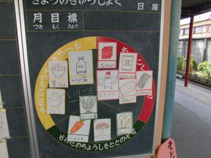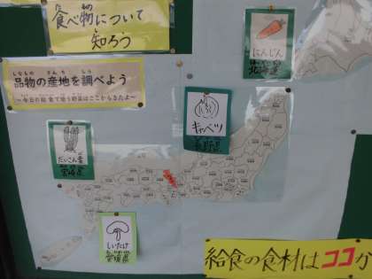 今日は子供に人気のまぜごはんが登場しました。けずりぶしのだしが効いた「こぎつねちらし」。今日は手巻のりつきです。一年生にとってははじめての「手巻のり」悪戦苦闘しながらも,のりと一緒にいただいていました。