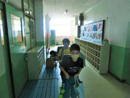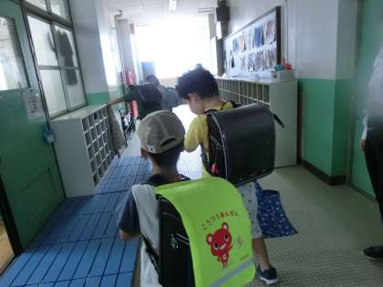 「うわ,重いなあ。」と大きなカバンをかかえて,「先生,さようなら!!」