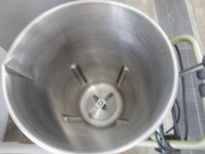 給食で大人気のカレーや,クリームシチューに使う,手作りルウの材料「脱脂粉乳」を撹拌する「撹拌機」です。給食では,市販のルウではなく,小麦粉・バター・サラダ油を炒めて作っています。脱脂粉乳を入れてなめらかなルウに仕上げていきます。脱脂粉乳は粉末のため,この撹拌機に脱脂粉乳と微温湯を入れて十分に撹拌してからルウにしようします。夏休み中には,この他の調理器具にも感謝の気持ちを込めて給食調理員さんが掃除してくださっています。