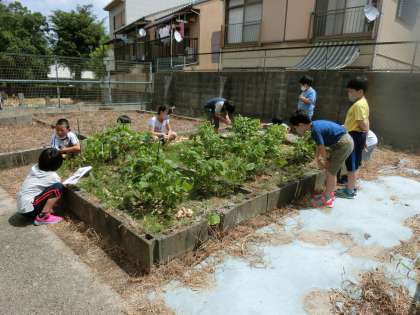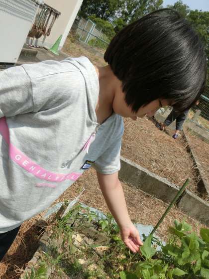 小豆のかんさつ1 公開日 2020/08/26 更新日 2020/08/26 若草学級 畑に行きました。 「うわ!大きくなってる!」 「花がさいているかなあ?」 「葉っぱに小さい毛がいっぱいあるで。」 発見がたくさんありました。