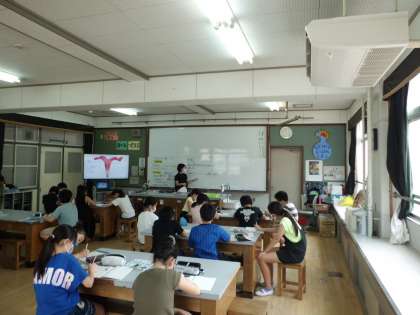 理科の学習の様子です。 花粉が,いつおしべからめしべにつくのかを学習しました。
