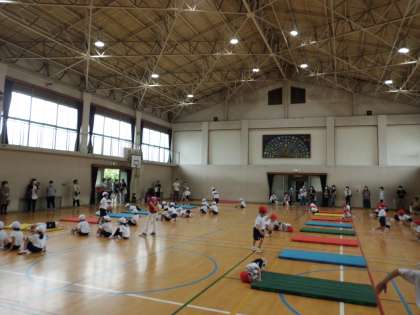 2時間目は,体育館でマット遊びをしました。