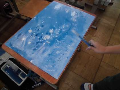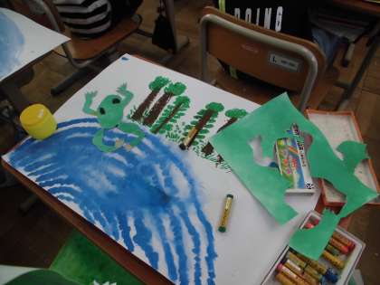 絵の具やクレパスを使って表したいことを工夫して表現しています。