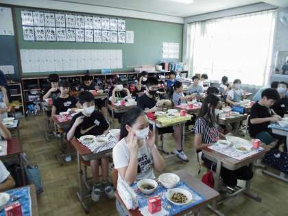 四連休明けで,学校へ来る足取りは重たい子もいたかもしれませんが,給食時間にはお腹もペコペコ,美味しくクラスのみんなでいただきました。