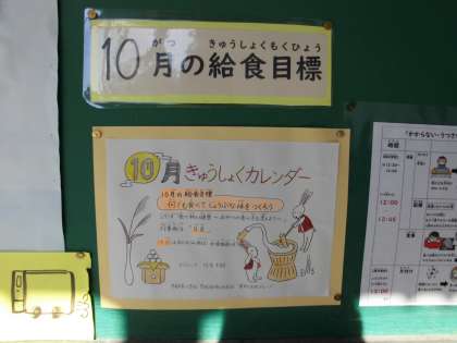 10月2日(金)の献立は,ごはん・牛乳・肉にそ納豆・手巻のり・ほうれん草のおかか煮・キャベツの吉野汁でした。キャベツの黄緑・にんじんのオレンジ色鶏肉のうま味がとても美味しかったです。