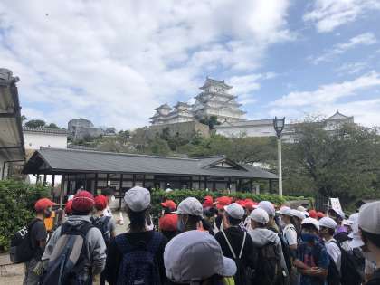 姫路城に到着しました。バスを降りたところから姫路城が見えます。この後は,グループごとでの見学となります。