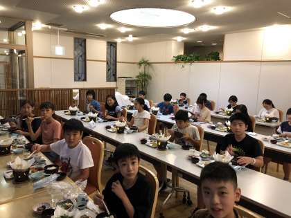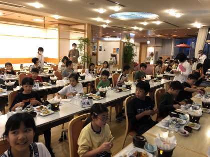 6年生修学旅行 夕食その1 公開日 2020/10/05 更新日 2020/10/05 6年生 夕食はみんなが同じ方向を向いて食べています。会話をしながら食事できないのは少し残念ですが,おいしい料理を食べられることに感謝しながら,お箸はどんどん進んでいます。